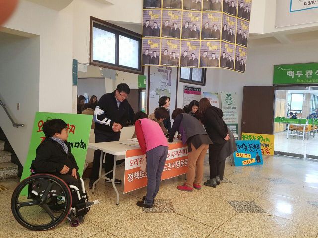 오늘(11/3) 그 첫날 제주대학교 학생회관 1층 로비에서 청구 서명 받고 있습니다.